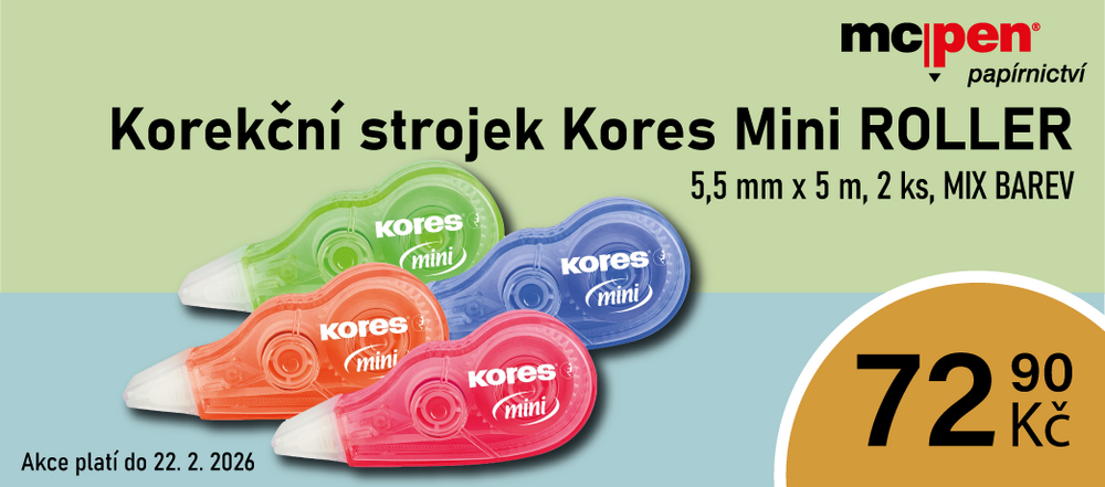 V prodejně McPen papírnictví aktuálně probíhá nabídka na 2ks korekčního strojku Kores Mini Roller.