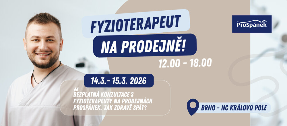 Využijte jedinečné příležitosti. Již tento víkend, 14. a 15. března 2026, v čase od 12:00 do 18:00, probíhá na prodejně ProSpánek v Nákupním centru Královo Pole bezplatná konzultace s fyzioterapeutem.