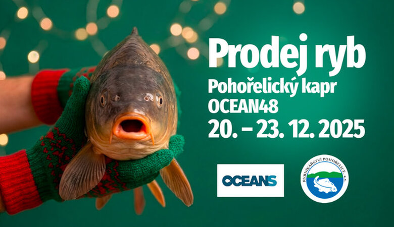 1. Pohořelický kapr - tradiční nabídka kaprů, šupinatí i bezšupinatí, různé velikosti - venku před vstupem do centra