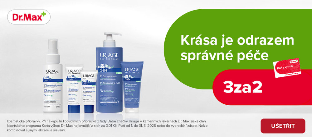Při nákupu tří libovolných přípravků z řady Uriage BéBé v kamenných lékárnách získá člen klientského programu Karta výhod nejlevnější z nich za 0,01Kč.