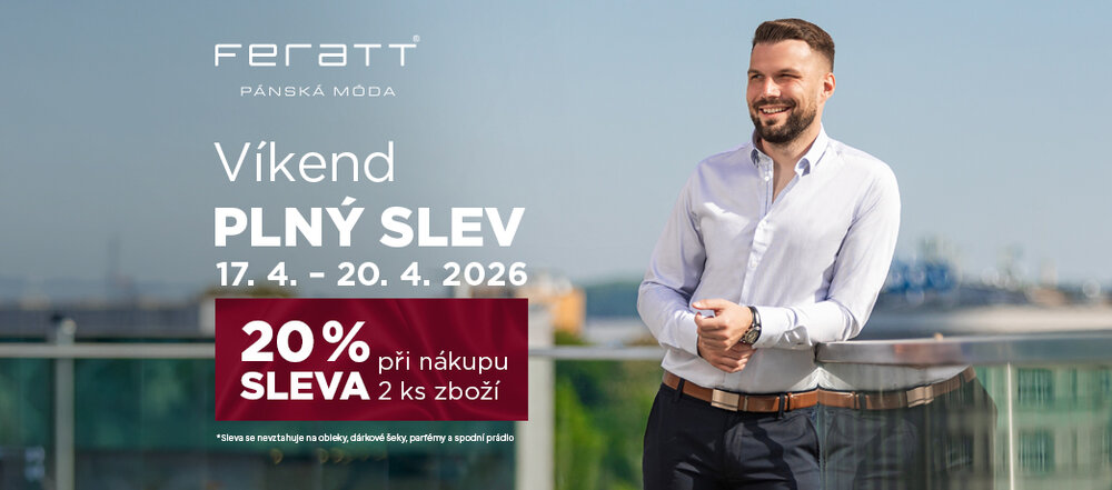 Nepropásněte velkou akci a nakupte s 20% slevou od pátku 17. 4. do pondělí 20. 4. 2026. Akce platí na nezlevněné produkty mimo obleky, dárkové šeky, parfémy a spodní prádlo.